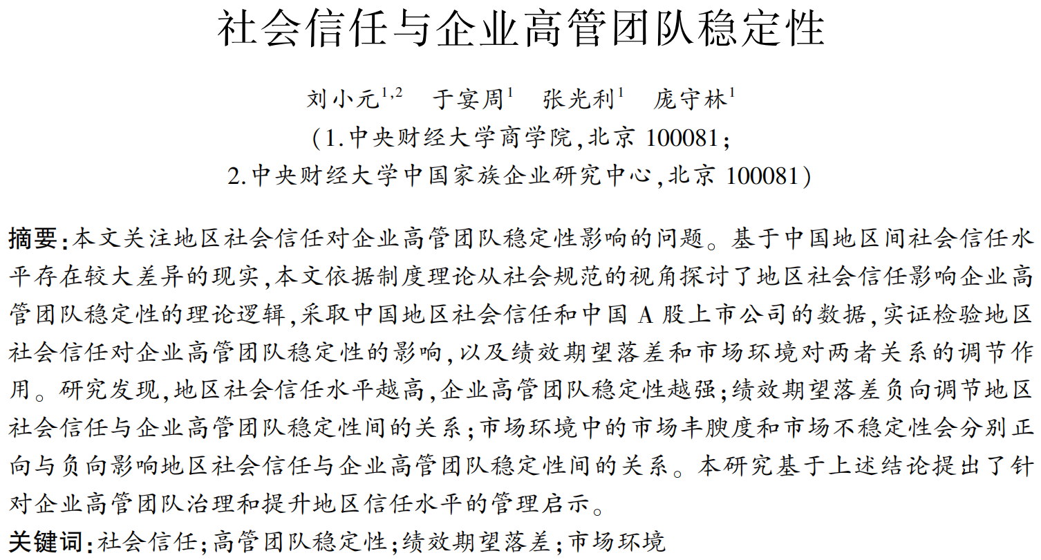 本团队对企业高管团队稳定性的评估,参考了刘小元、于宴周、张光利、庞守林(2025)的相关研究成果。