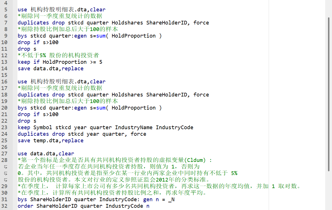 Clratio共同机构投资者持股比例:在季度上,计算出企业所有共同机构投资者持股比例之和,取年度均值。