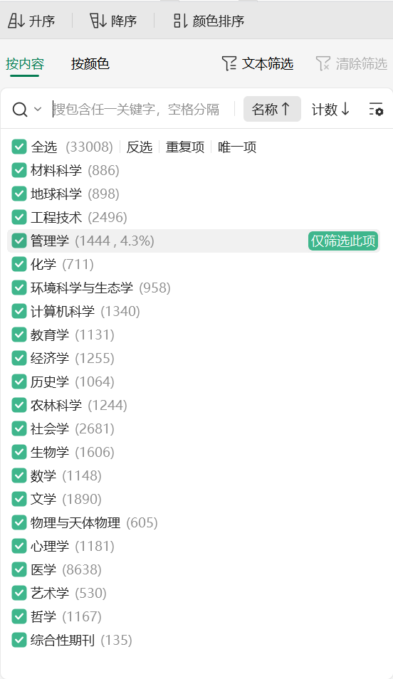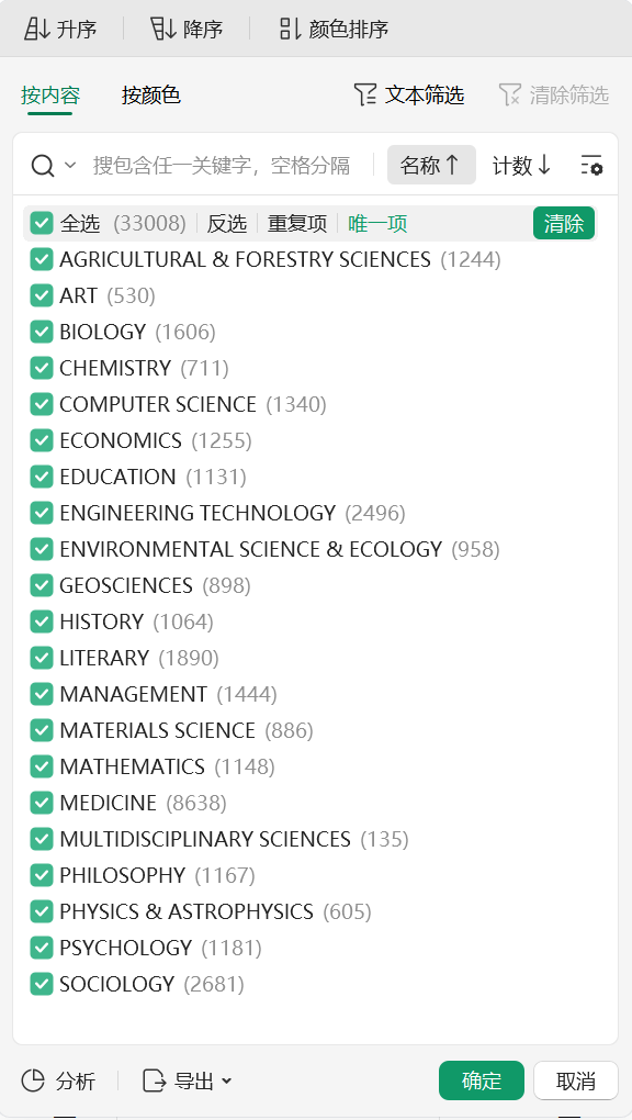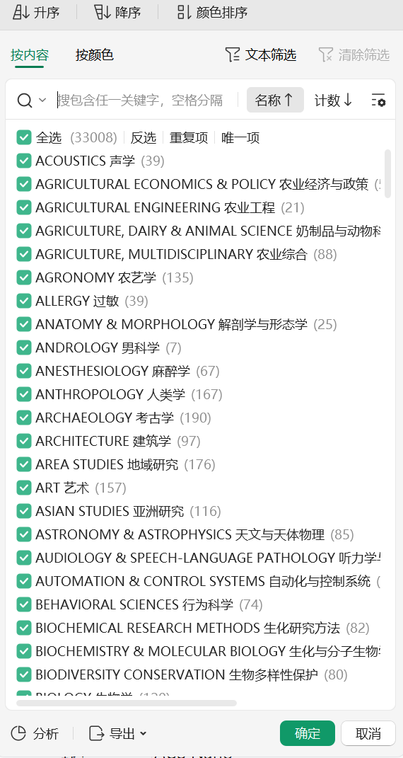 所含指标:大类、大类_EN、大类分区、小类、小类分区、刊名、ISSN、review、oaj_index、open_access、web_science、分区年份。