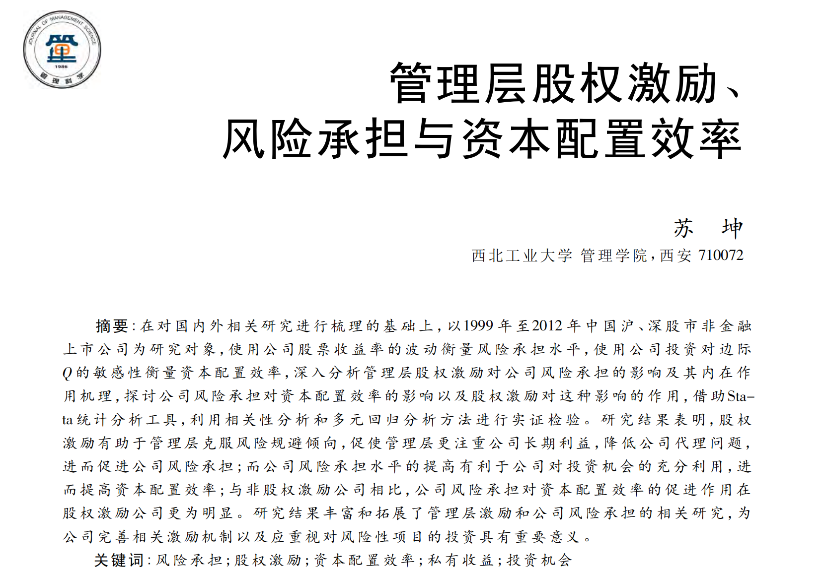 参考文献 [1]苏坤.管理层股权激励、风险承担与资本配置效率[J].管理科学,2015,28(03):14-25.