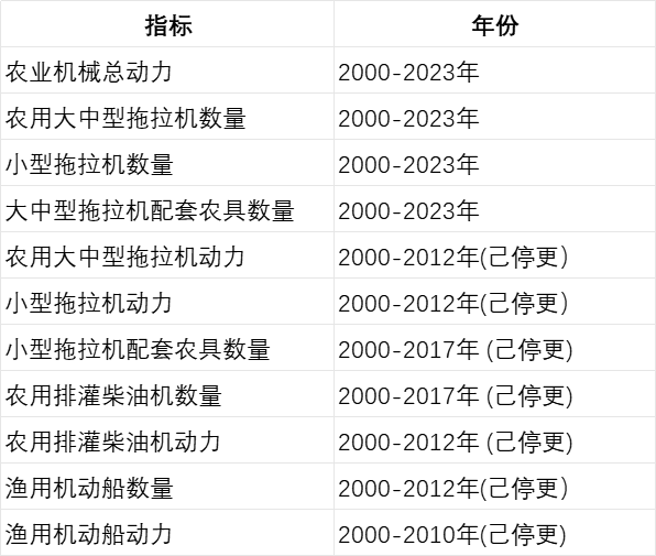 农业机械化是现代农业转型的核心指标,其时空变化对理解中国农业现代化意义重大。该数据集涵盖 2000-2023 年全国农业机械相关指标,可为本领域的农业技术扩散、规模经济效应等研究,提供优质数据支持。 数据来源:国家统计局