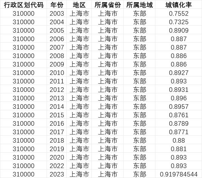 2023 年末我国常住人口城镇化率达 66.16%,较 1949 年提升 55.52 个百分点。下面简单分享覆盖省、市、县三级的城镇化率面板数据,方便快速了解核心信息。