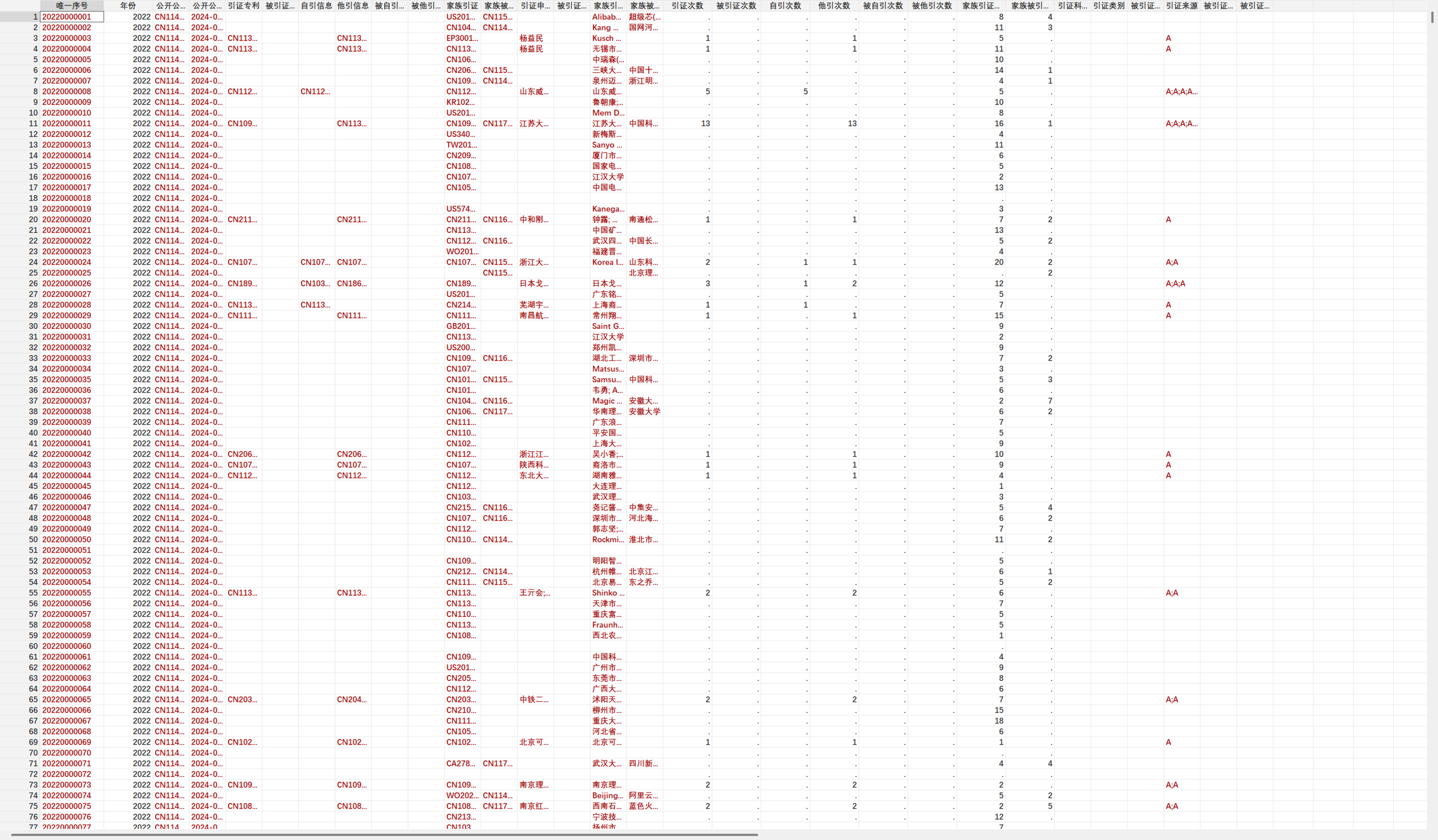 关键优化:已匹配专利申请人的省、市、县名称及代码,无需额外关联原始专利数据,新增唯一序号字段,可快速对接其他专利数据集