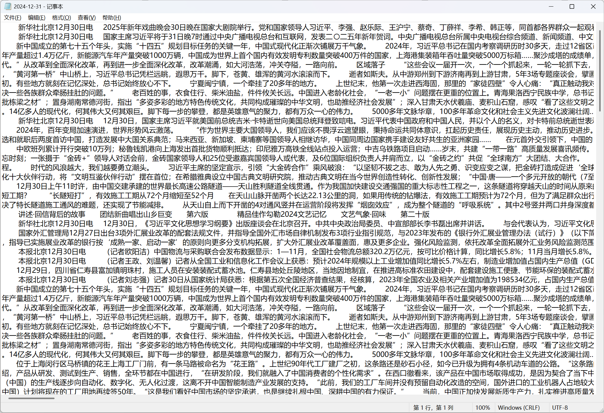 这份 1946-2024 年《人民日报》文本数据,是横跨近 80 年的权威新闻文献汇编,完整收录了中国共产党机关报从源头到新时代的文字印记,堪称记录国家发展与社会变迁的 “语言化石”。其数据溯源可至 1946 年 5 月 15 日晋冀鲁豫《人民日报》创刊号 —— 这份采用集字报头、套红印刷的解放区报纸,成为数据开篇的历史原点,随后无缝衔接 1948 年报纸合并更名、1949 年随党中央迁入北京后的全部报道,直至 2024 年 12 月的最新内容,形成贯通战争年代、建设时期、改革开放与新时代的完整史料链。