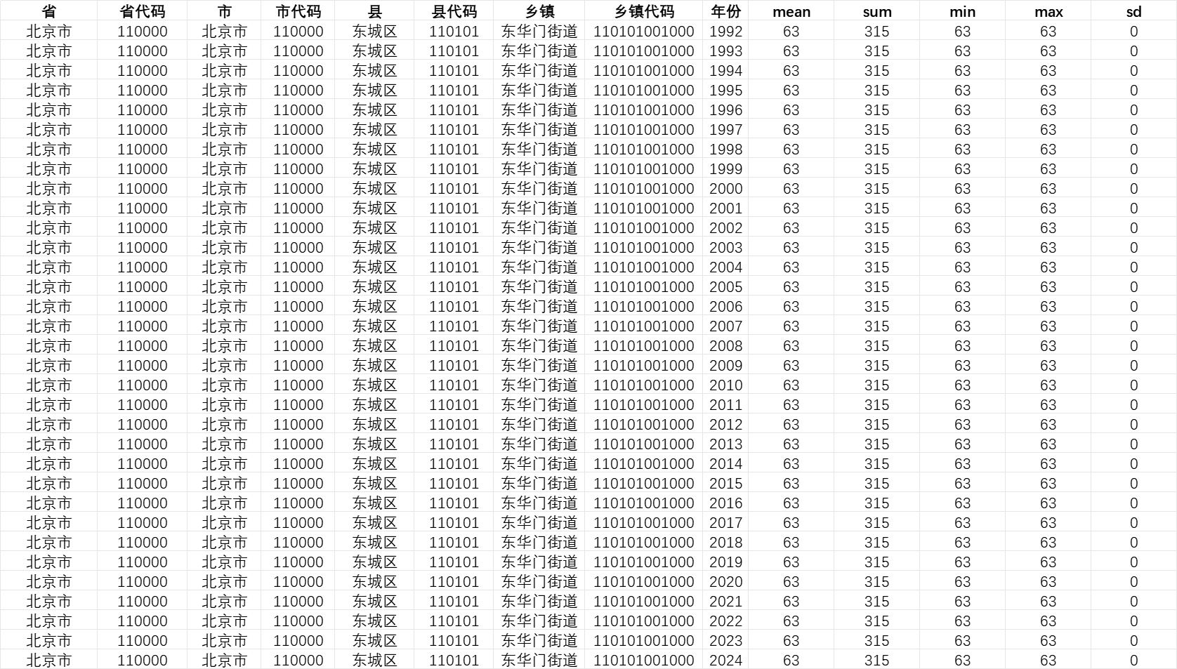 数据来源是 Harvard Dataverse 平台的中国区域栅格数据,通过 R 语言处理后,生成了四个行政层级(省、市、区县、乡镇)面板数据文件。