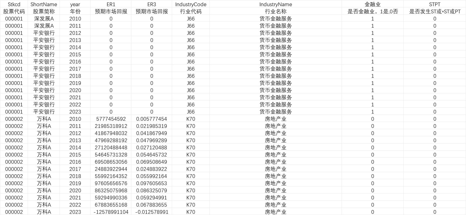 计算逻辑:企业预期市场回报(er)= 企业当年销售额 – 企业过去 2 年销售额的均值。