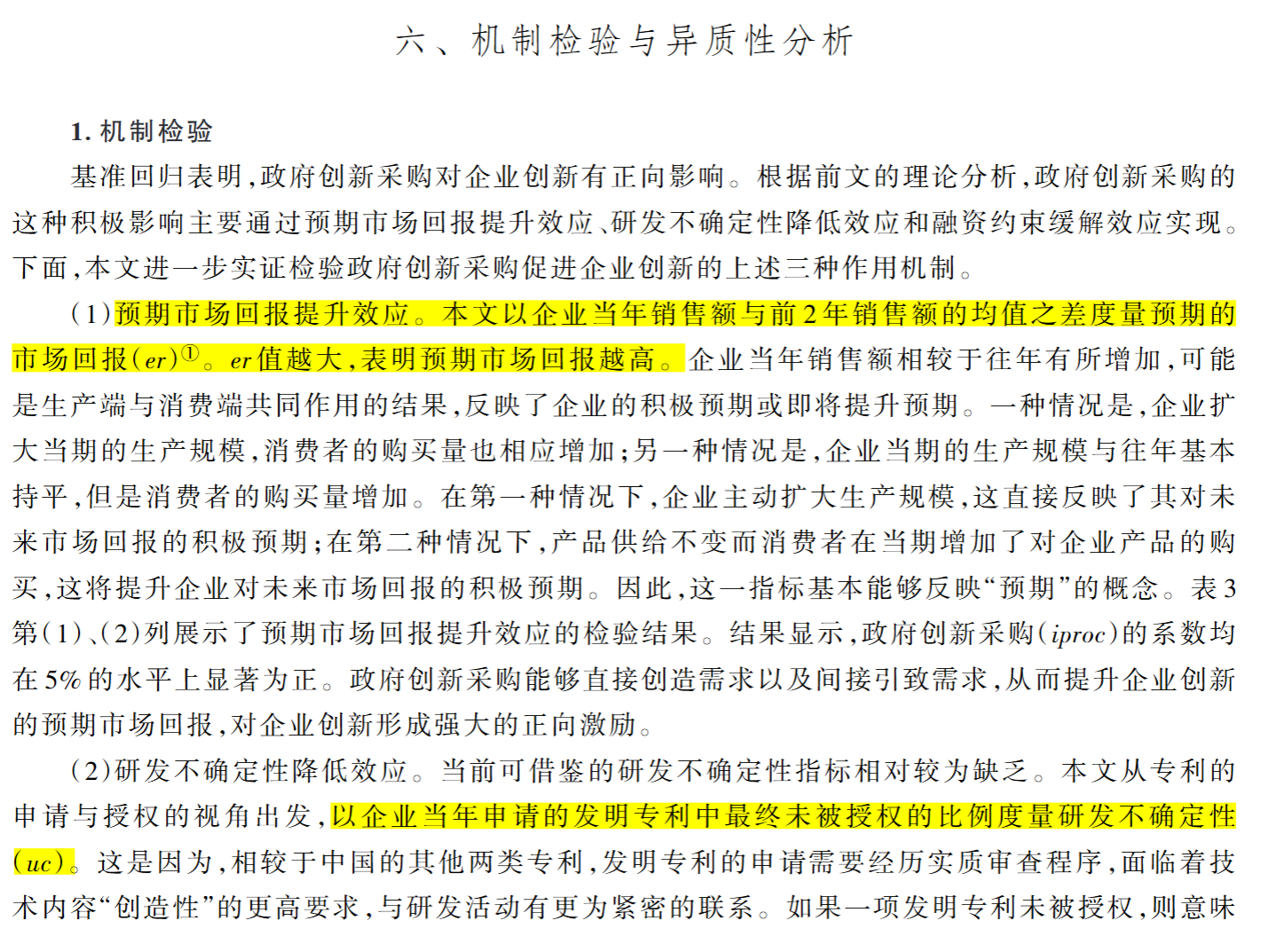 参考文献(孙薇、叶初升,2023)的 “机制检验 – 预期市场回报提升效应” 部分,采用以下方式衡量企业预期市场回报(变量符号为 “er”):