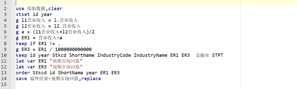计算逻辑:企业预期市场回报(er)= 企业当年销售额 – 企业过去 2 年销售额的均值。