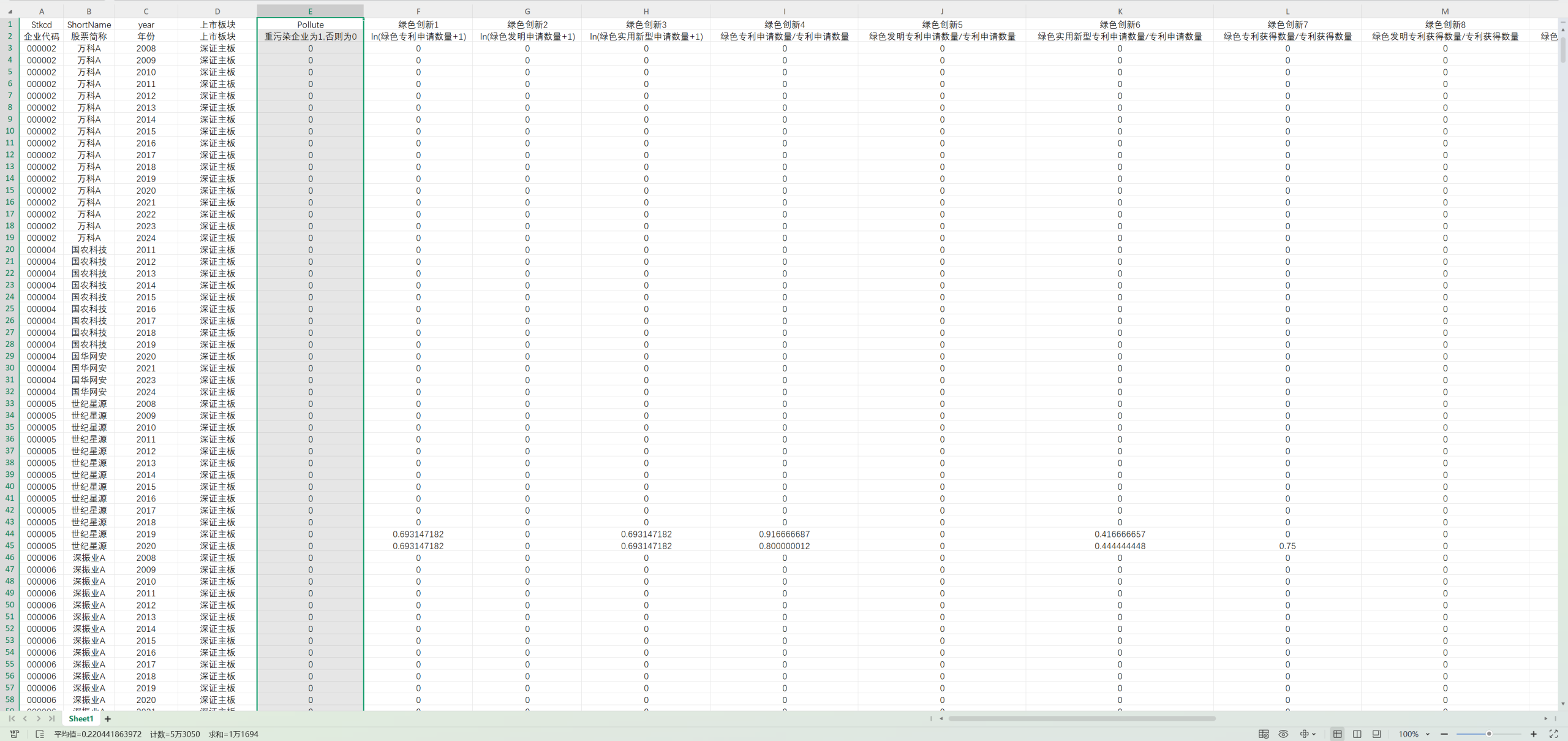 绿色创新7 = 绿色专利获得数量 / 专利获得数量