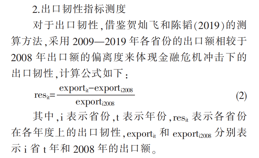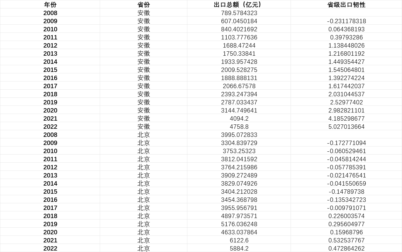参考贺灿飞和陈韬(2019)的方法,通过 “出口额偏离度” 来衡量省份出口韧性,核心是对比省份各年度出口额与基准年份出口额的差异。