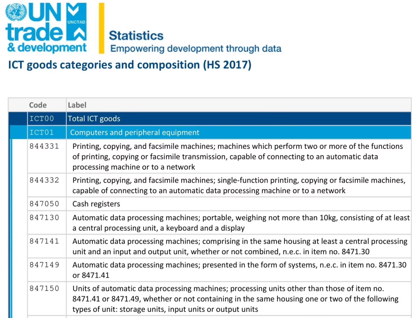 ICT03 Consumer electronic equipment ICT04 Electronic components