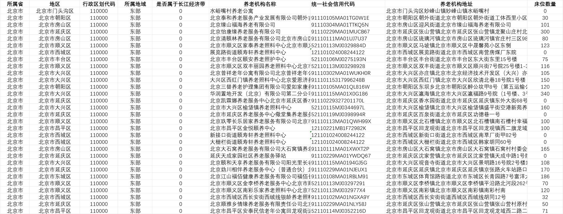 中国养老机构,是为老年人提供集中居住、生活照料、健康管理、文化娱乐等服务的综合性场所。其形态多样,涵盖养老院、福利院、老年公寓等,运营主体包含公立与民办两类,服务网络已覆盖全国城市与农村地区。本次分享将基于5 万余条中国养老机构明细数据展开,该数据源自民政部,具备官方性与权威性。