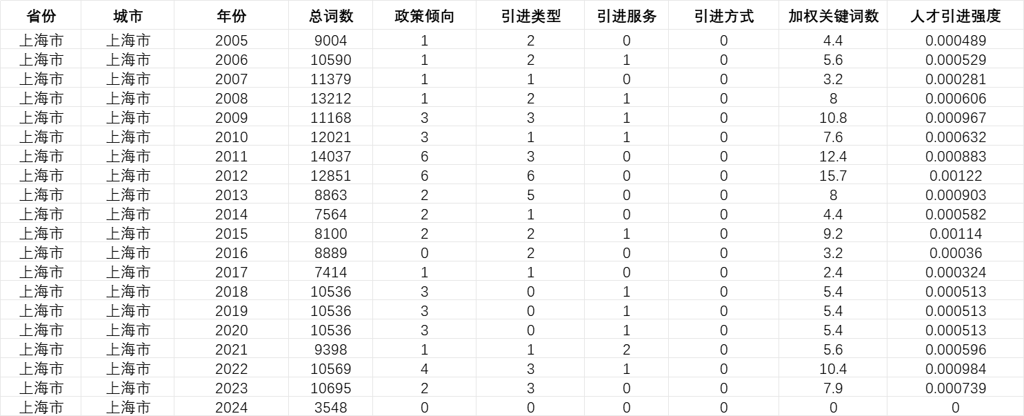 以全国 300 个城市 2005-2024 年的政府工作报告为初始样本,针对政策倾向、引进类型、引进服务、引进方式四类关键词开展爬取工作,最终获取各类关键词的出现频数。