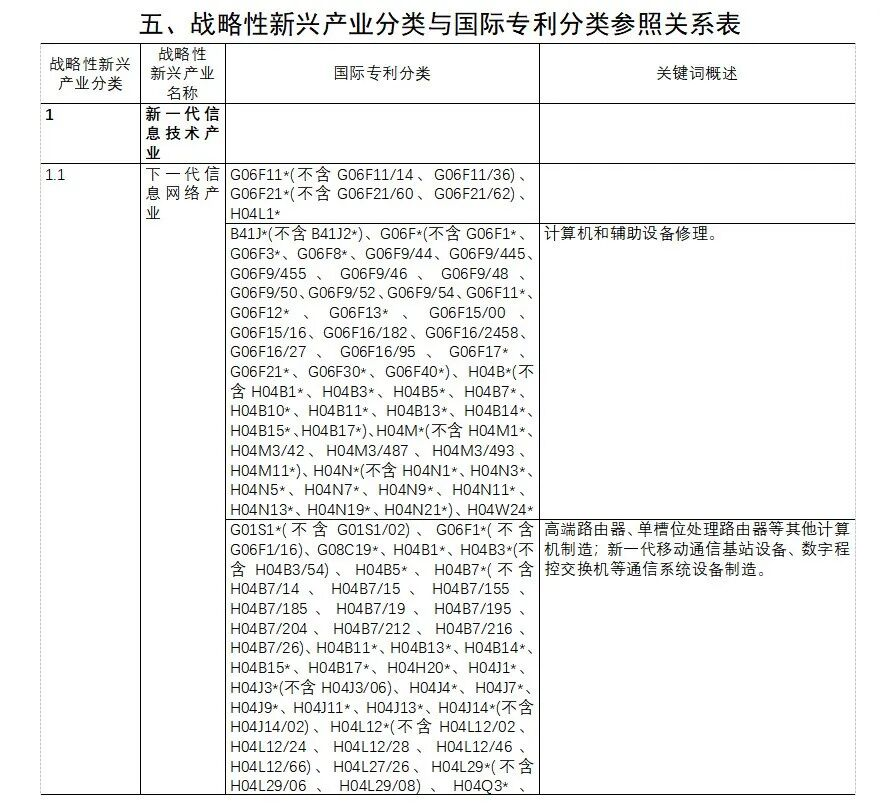 《战略性新兴产业分类与国际专利分类参照关系表(2021)(试行)》是为贯彻国家发展战略性新兴产业部署要求而制定的重要工具,旨在加强相关产业专利分析和动向监测。该表以国家规划文件为依据,将国际专利分类与战略性新兴产业分类直接对照,全面覆盖了新一代信息技术产业、高端装备制造产业等 9 大战略性新兴产业领域以及脑科学、量子信息和区块链等关键核心技术领域,共建立 1872 条关系。对推动战略性新兴产业的发展具有重要意义。