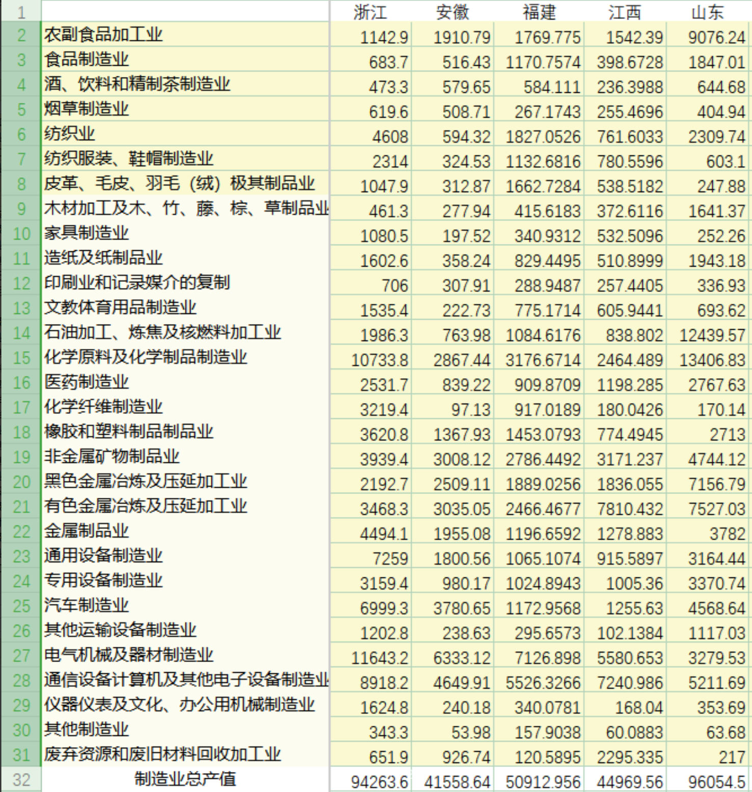 0750 制造业细分行业产值数据(2001-2023)
