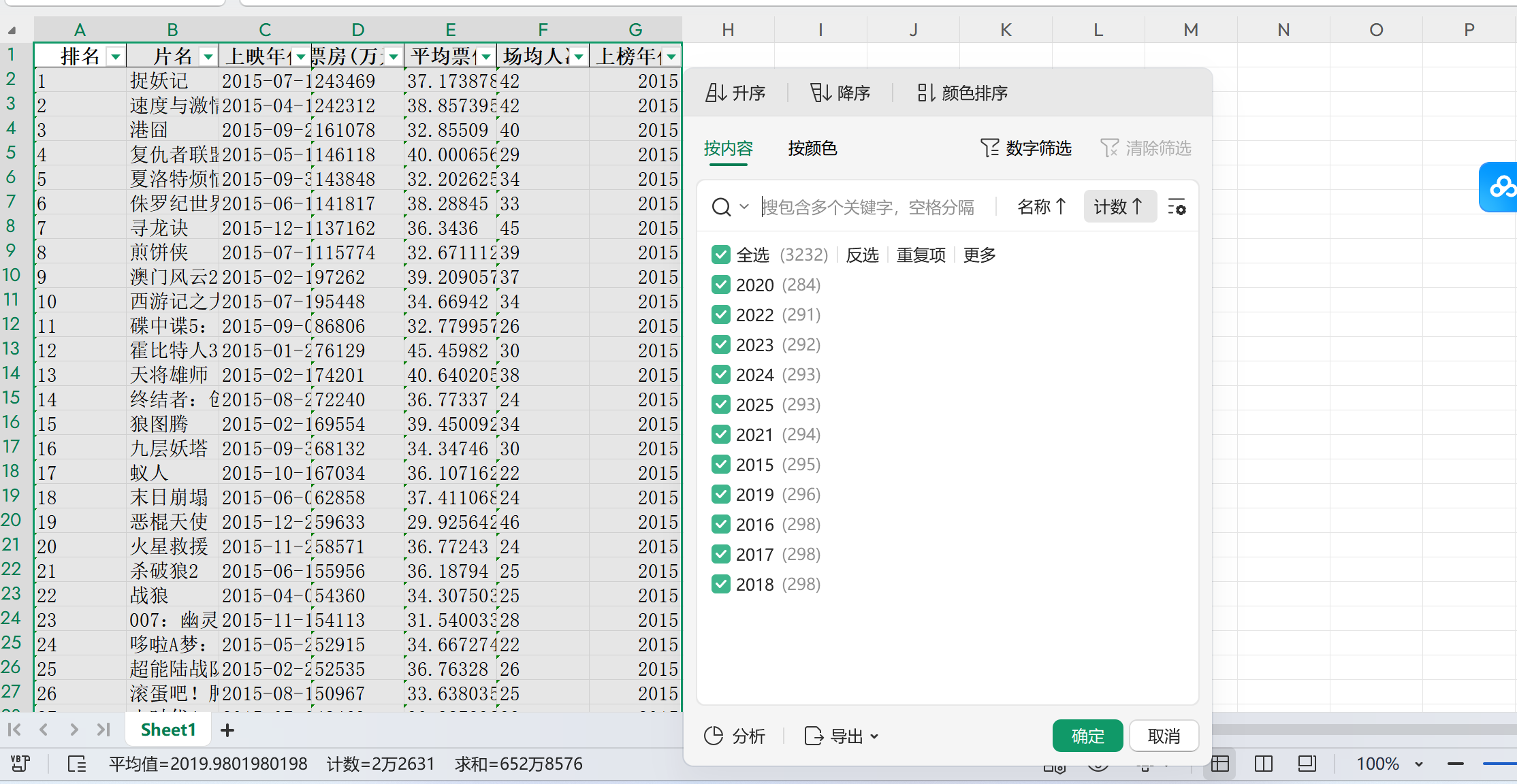✅全面覆盖票房、排名、上映日期、平均票价、场均人次等关键指标,维度完整无遗漏