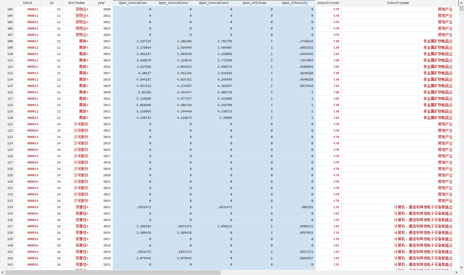 Open_Innovation2:非发明型开放性创新,等于企业非发明型联合专利申请数加一取自然对数