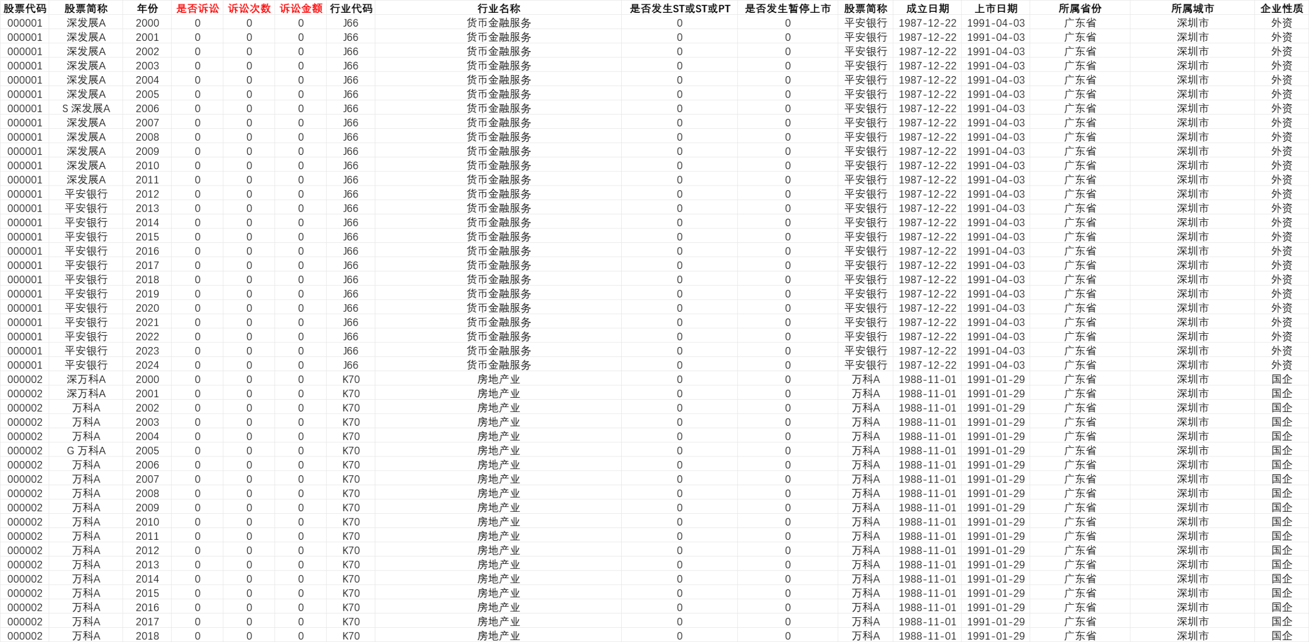 参考冯延超、毛新述、张俊瑞等的研究,选择了涉诉次数( LITI_cnt)和涉诉金额 ( LITI_amt)作为衡量公司诉讼风险的指标。其中,涉诉次数( LITI_cnt)在模型中用公司在一年中涉及诉讼次数加 1 的自然对数来表示,涉诉金额( LITI_amt)在模型中用公司在一年中涉诉总金额加 1 的自然对数来表示。