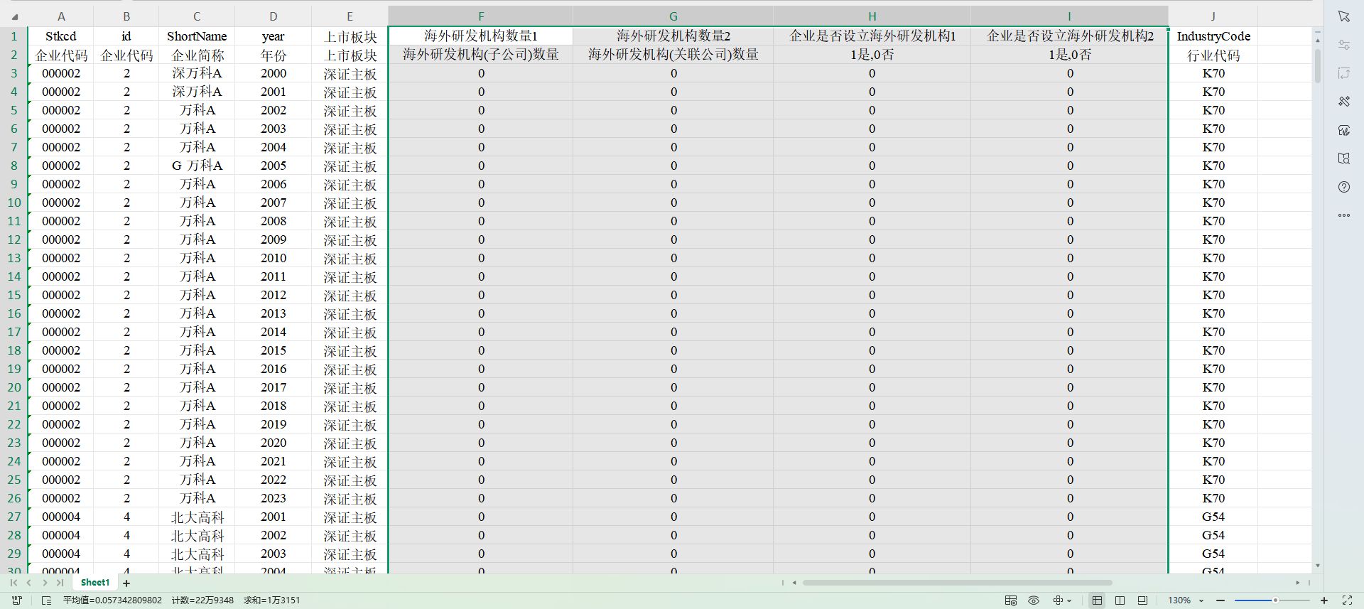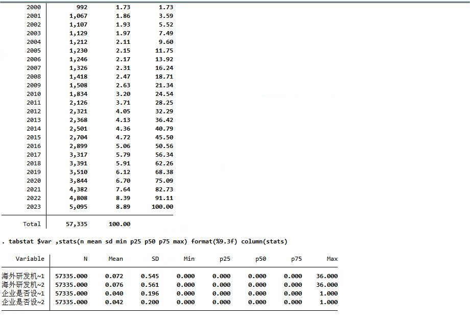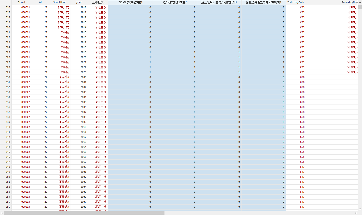 企业是否设立海外研发机构2:如果存在海外研发机构(关联公司)则取值为1,否则为0