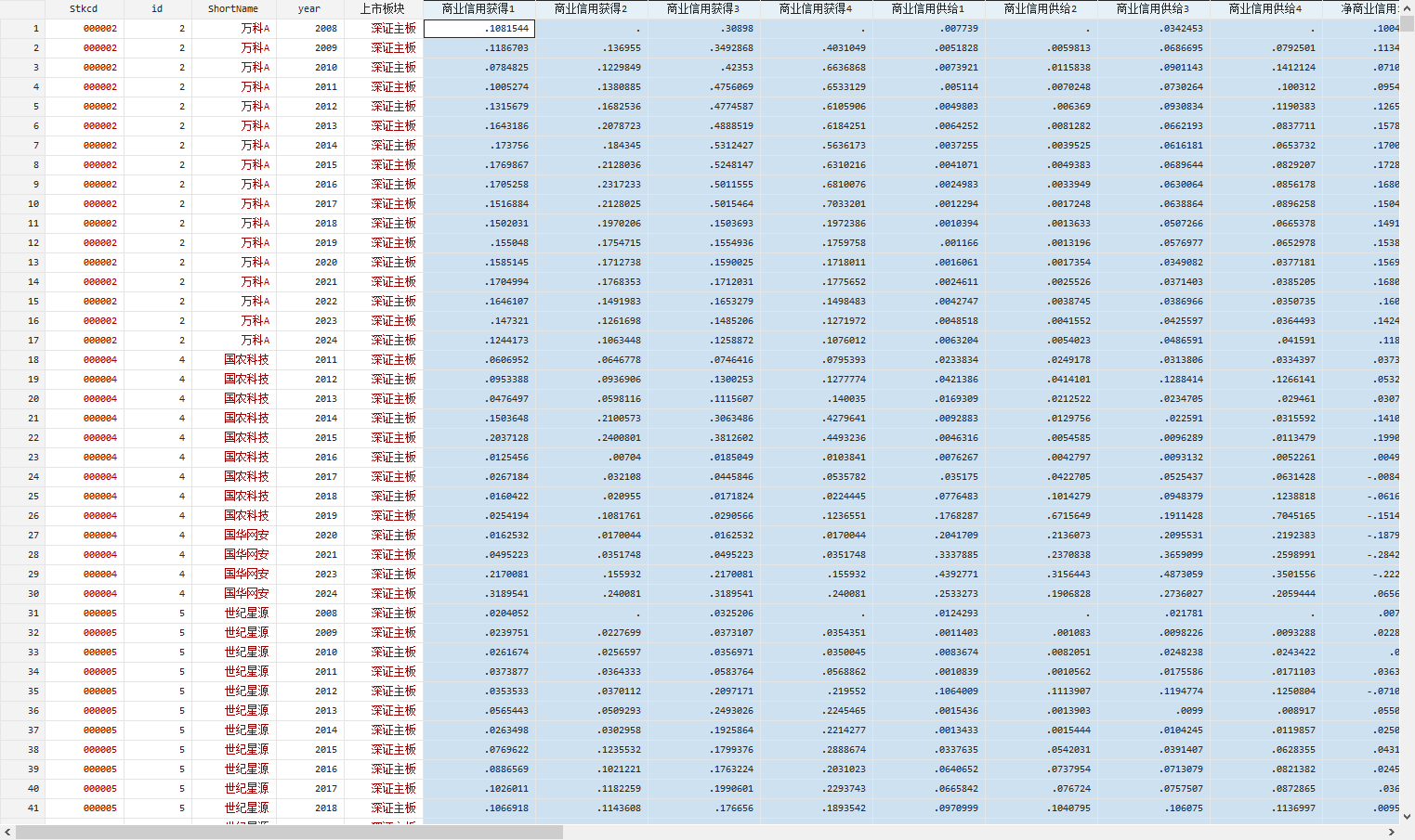 商业信用获得1:应付票据与应付账款的和除以总资产