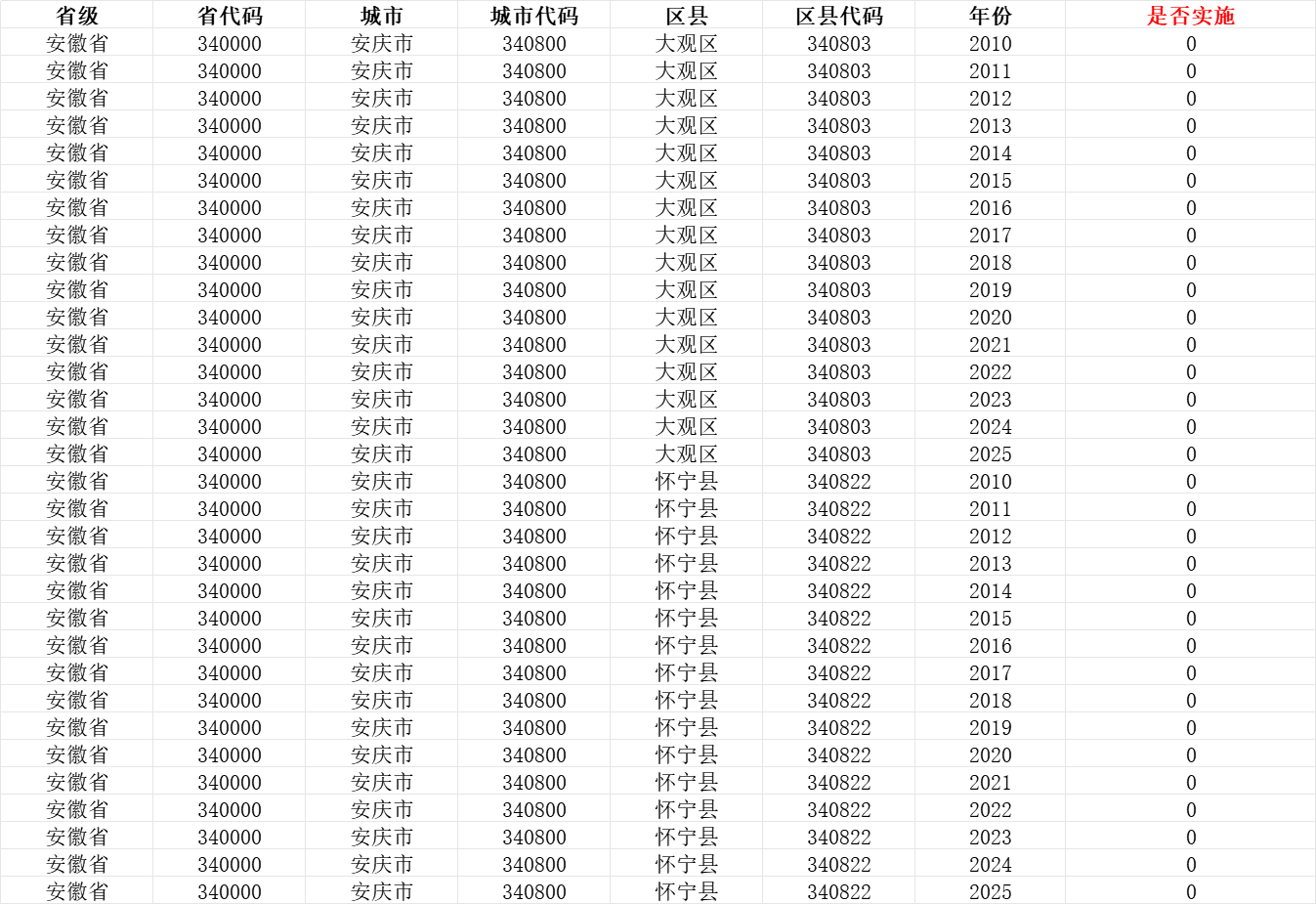 本数据以2019 年国家城乡融合发展试点区的设立为准自然实验,参照 Xiang Benwu(2026)的研究范式,选取全国 11 个国家城乡融合发展试验区作为研究对象,其覆盖区县累计达 80 余个。同时,将国家级新区所属的区县,以及被国家级新区纳入管辖范围的区县一并划入处理组,并对 2010-2025 年各区县的试点实施状态进行识别赋值:若区县在此期间被纳入城乡融合发展试点范畴,则赋值为 1;未纳入试点范畴的区县,赋值为 0。