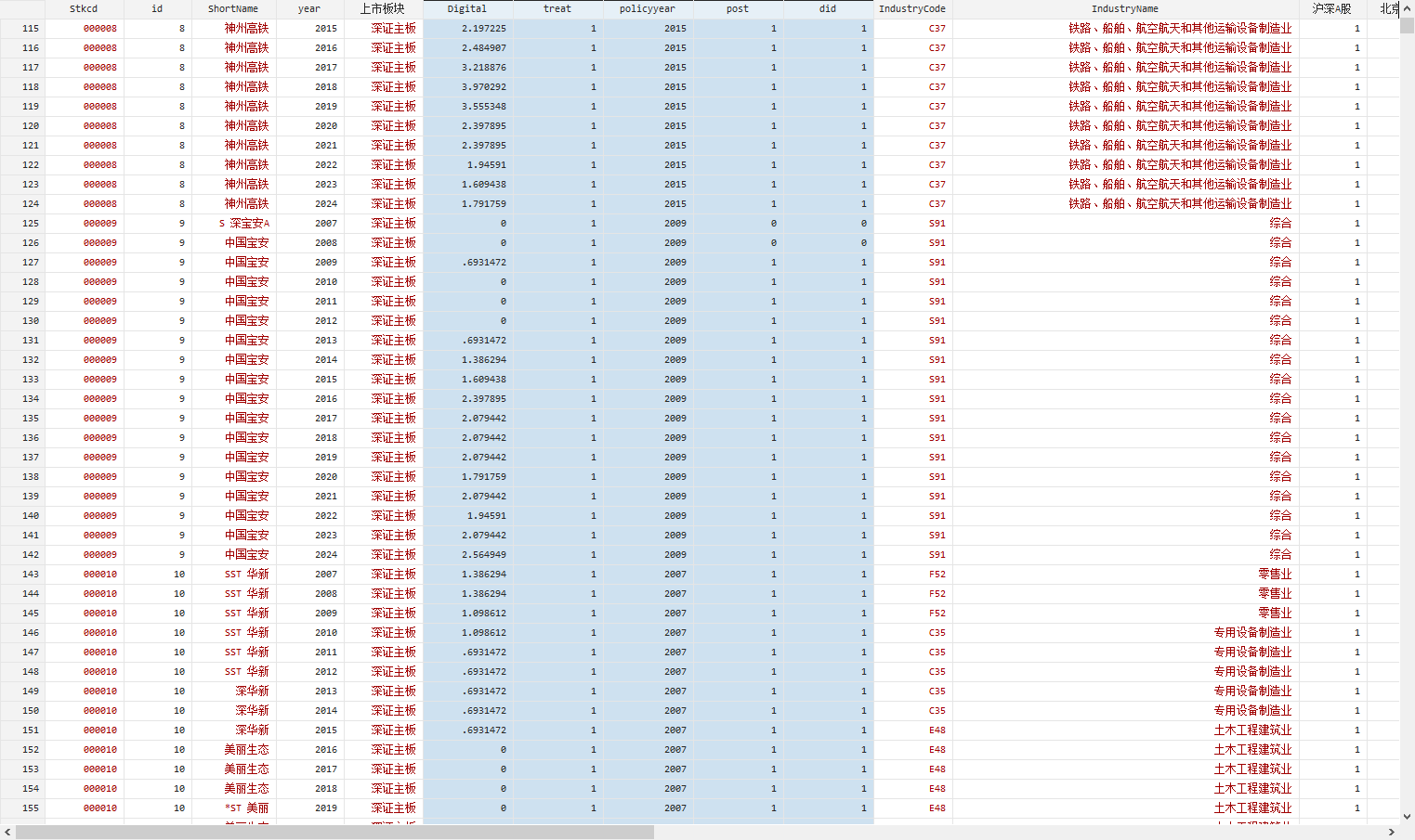 treat:若企业在样本期间内至少有一年进行数字化转型,则属于处理组,取值为1,否则为0