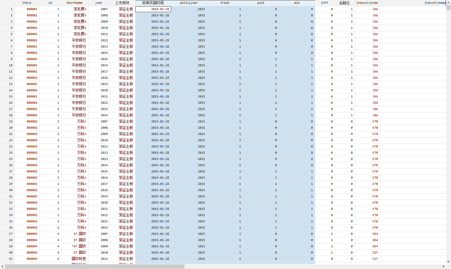 treat:如果企业所在省份被巡回法庭覆盖,记为处理组,赋值为1;否则记为对照组,赋值为0