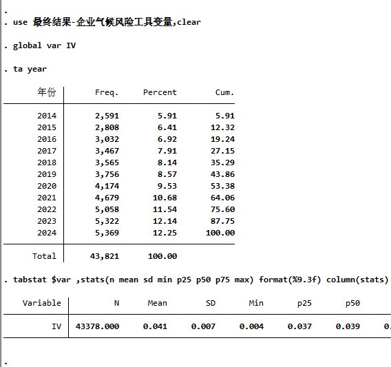 2014 – 2024 年,共 43,821 条观测值,全部A股上市公司。