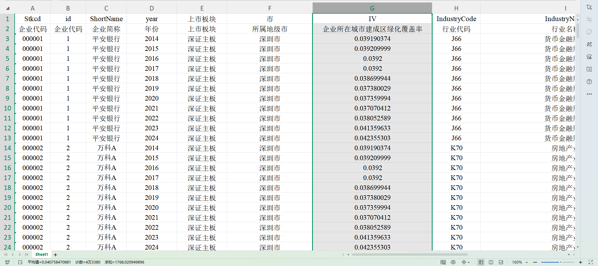 IV:企业气候风险的工具变量,采用企业所在城市的建成区的绿地覆盖面积占比。