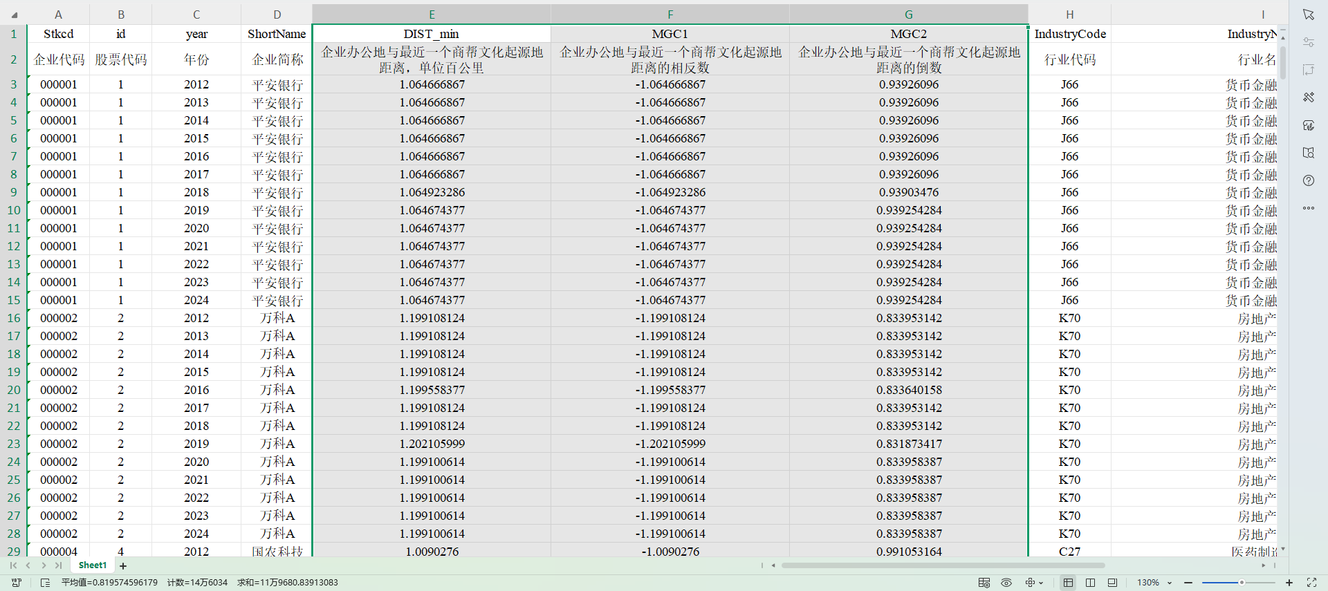 MGC1:企业办公地与最近一个商帮文化起源地距离的相反数