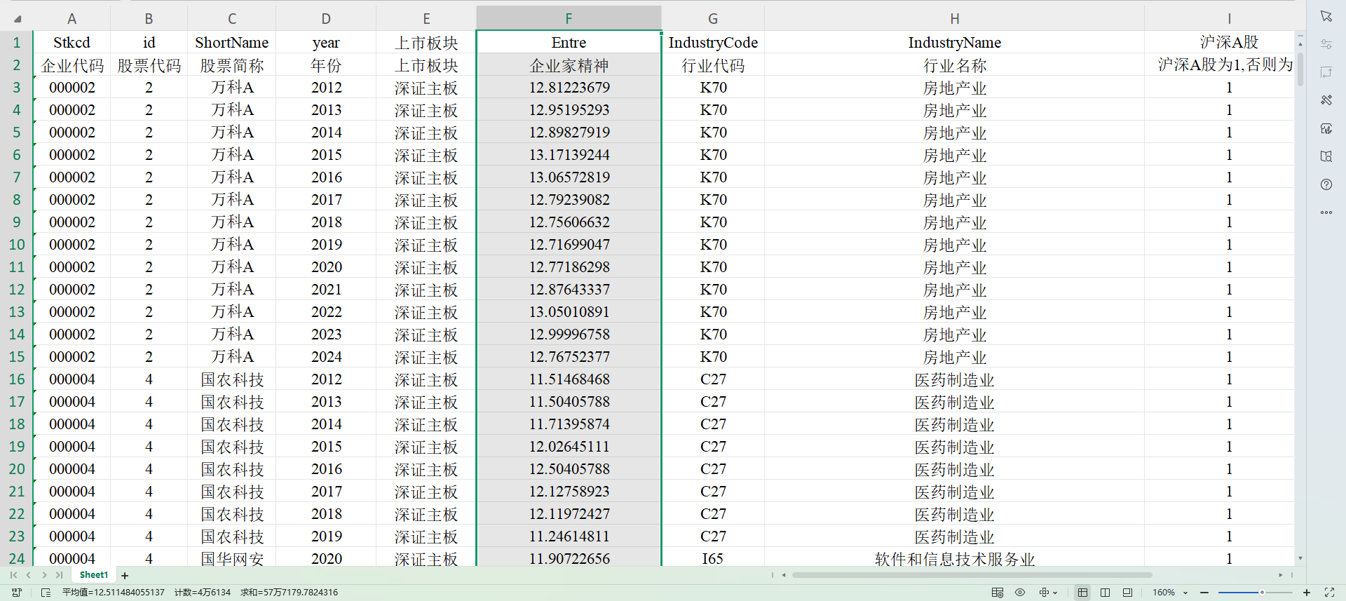 指标: Entre:企业家精神,值越大,企业家精神越强。