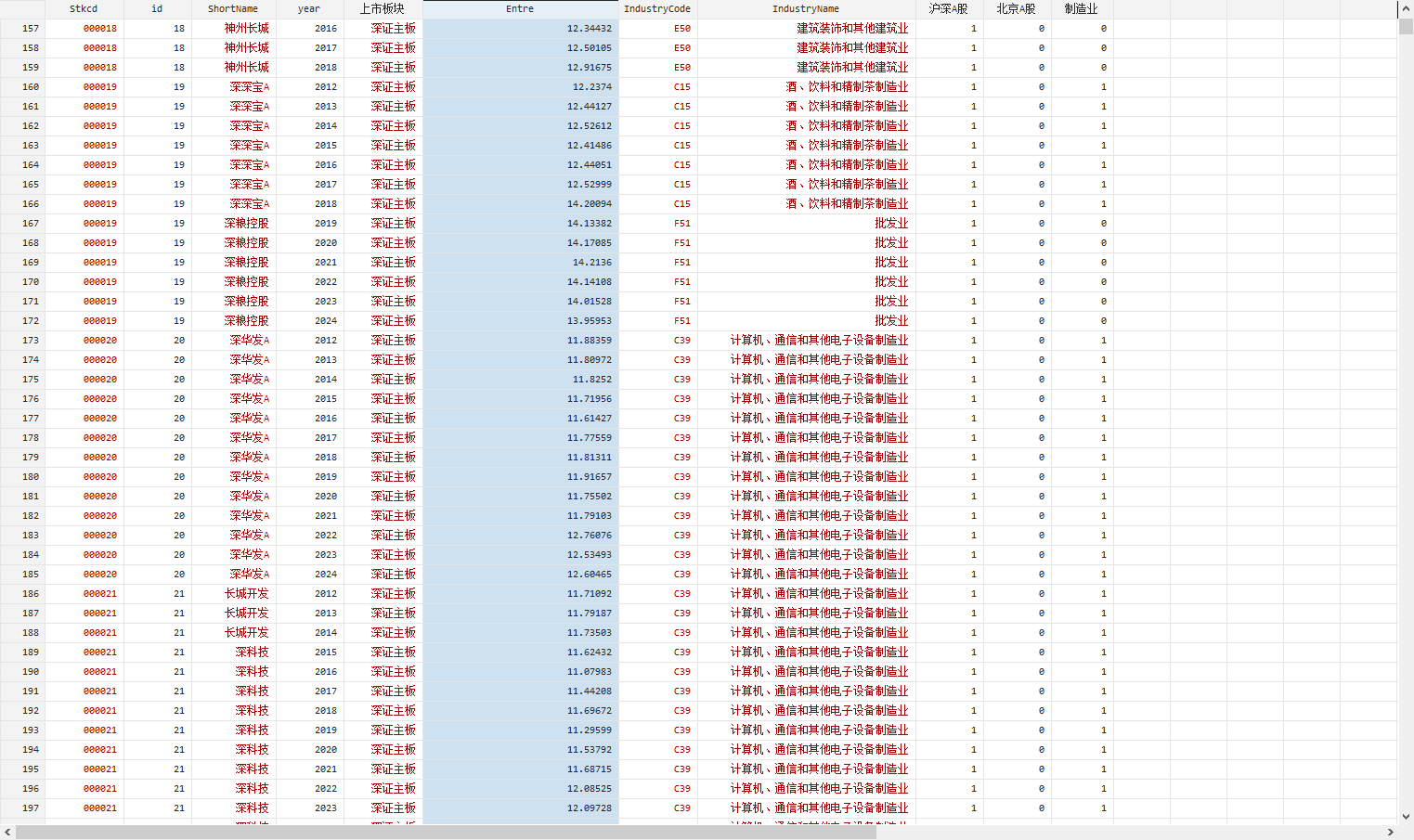 计算方法:参考《经济管理》,将通过熵权法确定专利申请数、人均固定资产、人均收入、人均无形资产以及董事会独立性的权重,通过计算得到综合得分的自然对数作为企业家精神的综合衡量指标。