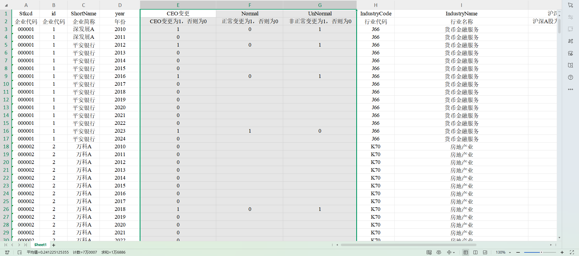 UnNormal:CEO非正常变更为1,否则为0。超过9成属于非正常变更。