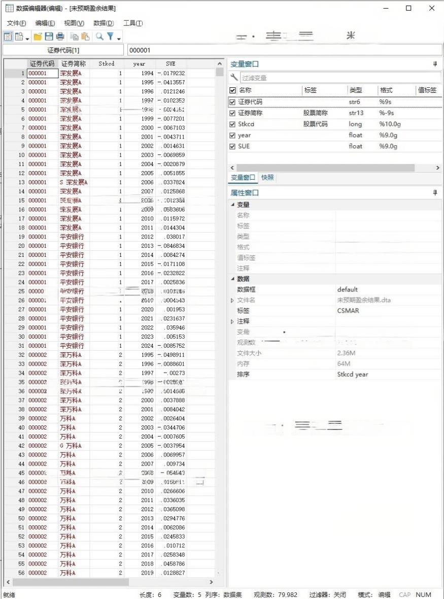 统计口径:全部A上市公司 数据样本:共79,982条观测值,具体见描述性统计,未剔除金R/STPT 数据来源:原始数据来自CS/MAR 数据格式:包括原始数据Dta、代码Dofile、最终数据Excel+Dta(发两种,未缩尾+双边缩尾1%)、参考文献Caj 文件大小:70.89MB 参考文献:[1]李伟,周启玲.媒体关注、管理层权力与盈余公告后Gu价漂移[J].会计之友,2022,(12):116-125.