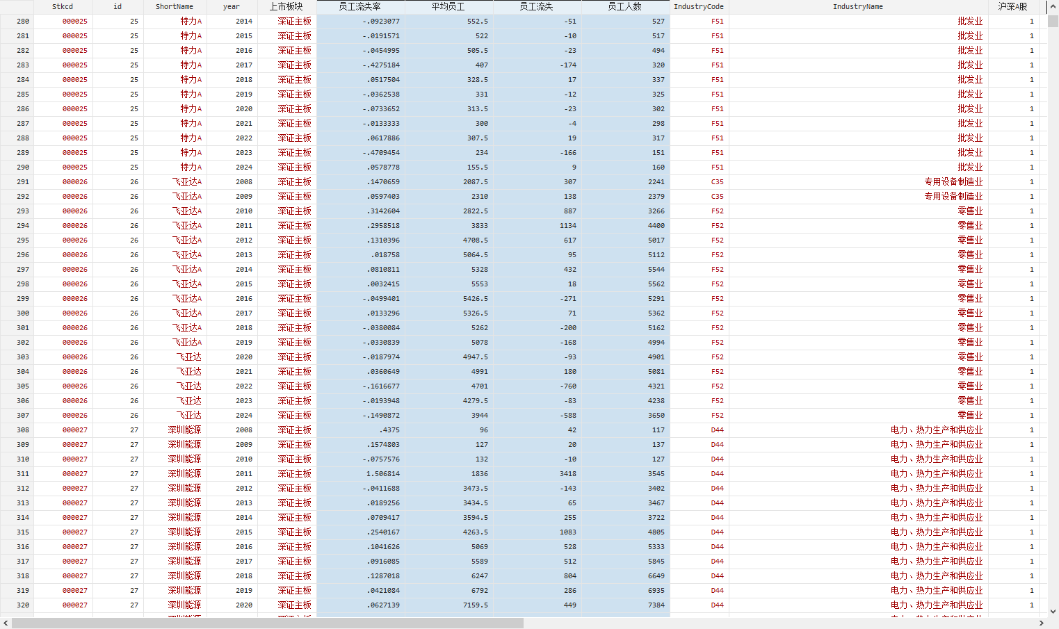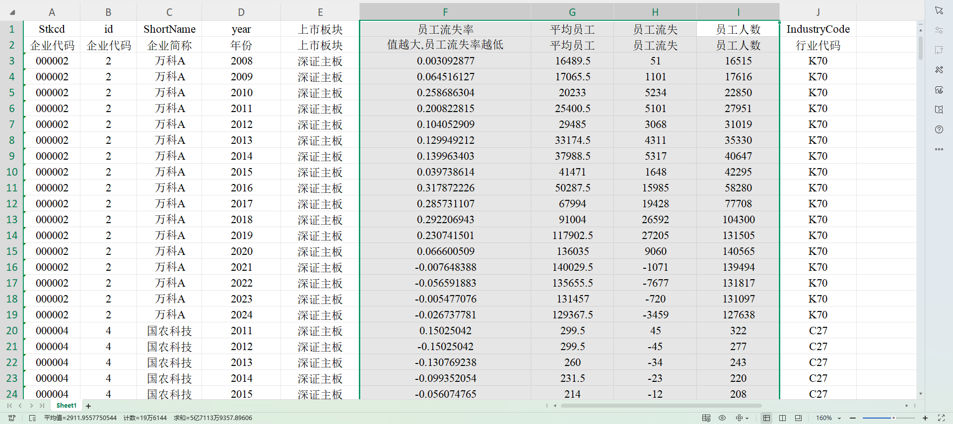 员工流失率:等于员工流失与平均员工人数的比值,值越大,员工流失率越低
