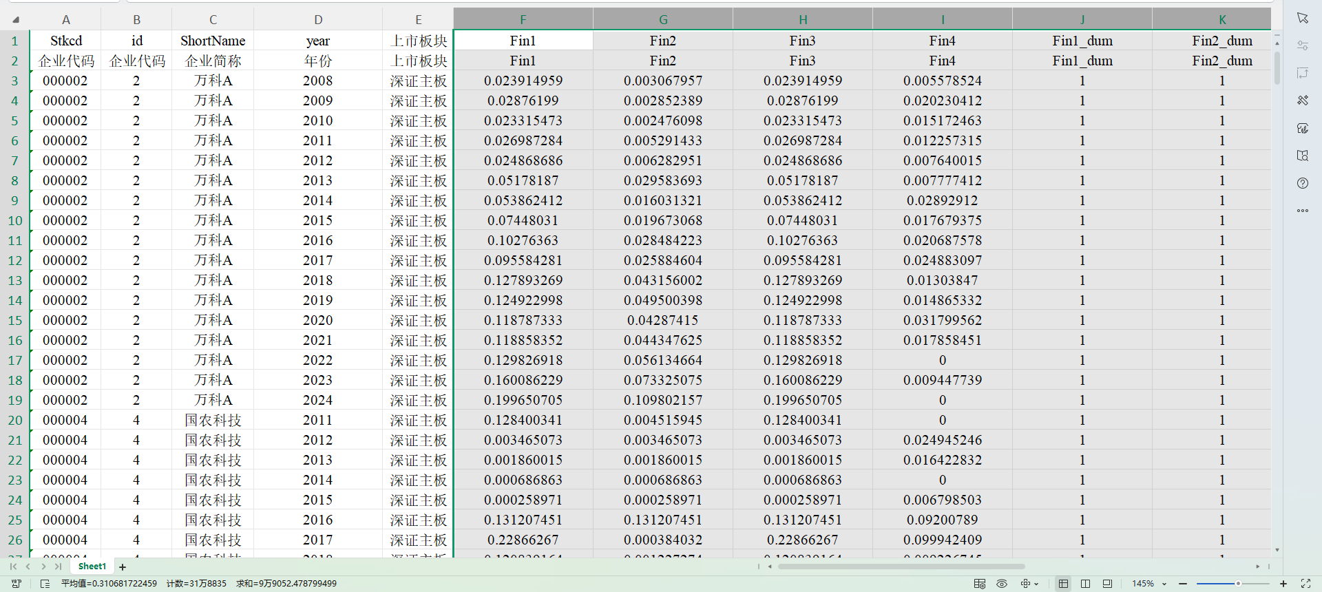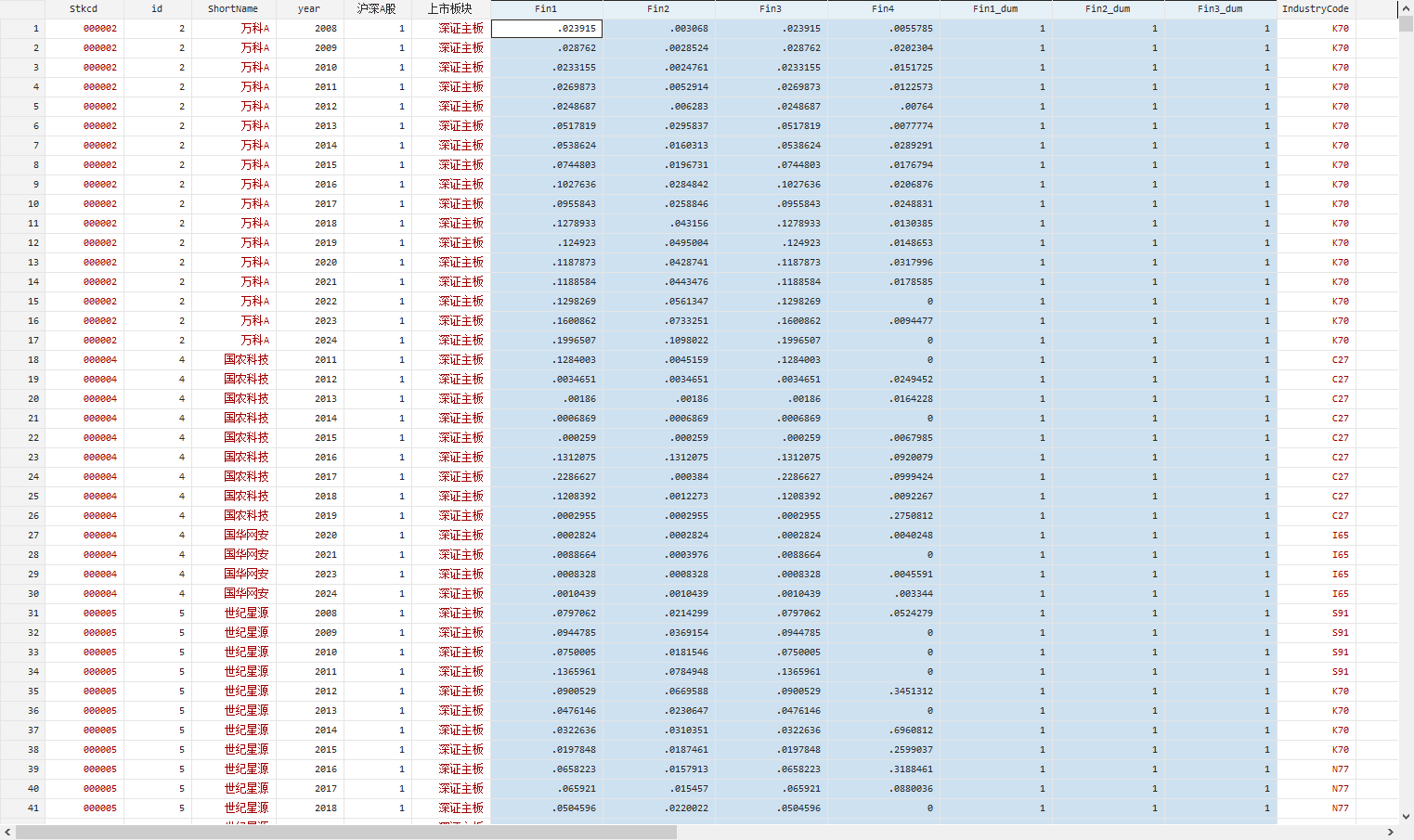 FinDum1-3:若对应指标大于0时,则取值为1,否则为0