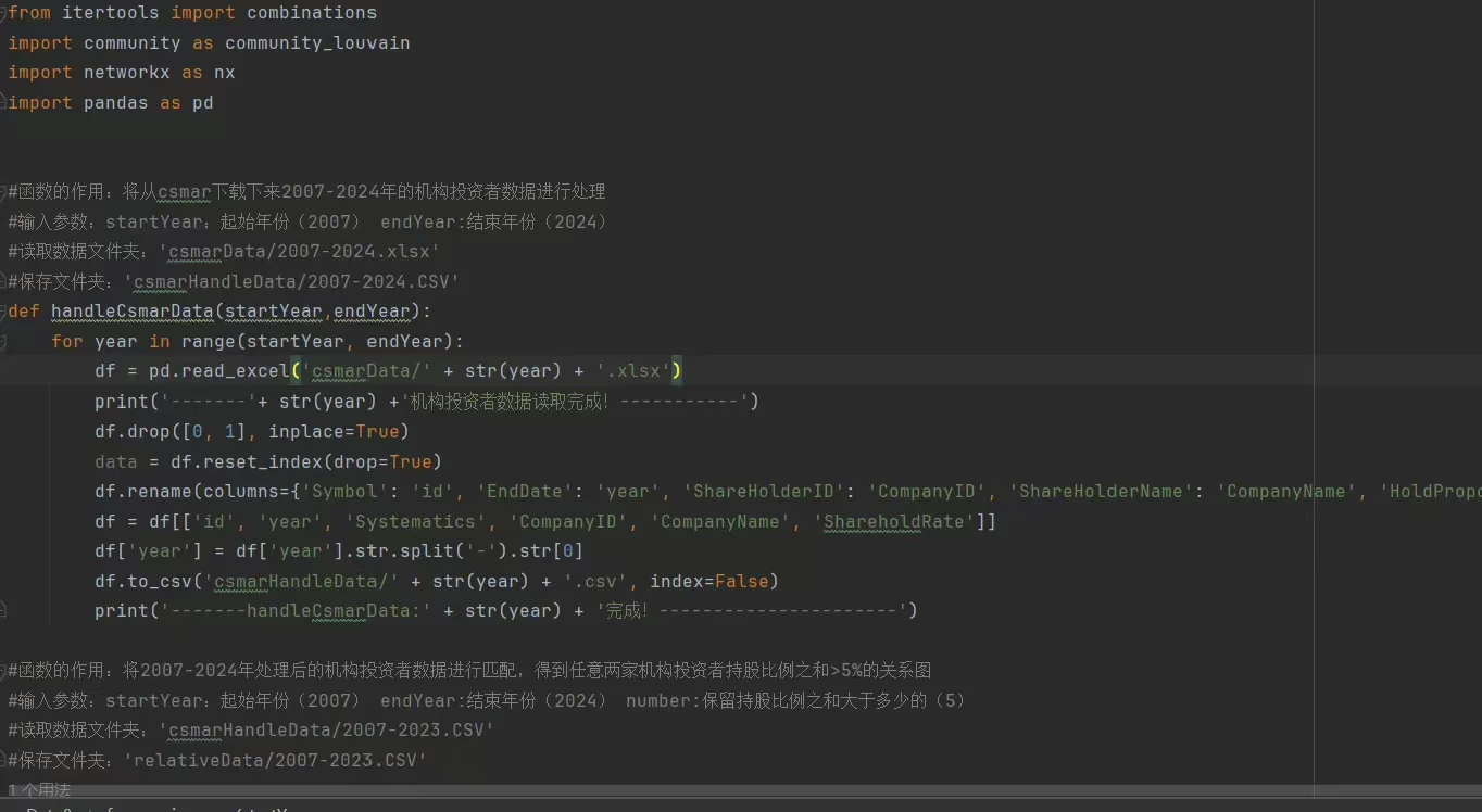 提供 csmar 原始数据,Python 处理后数据,计算好论文里可以直接合并的数据以及稳健性检验数据,以1%、2.5%、3%、5%和7%重新识别的抱团结果。