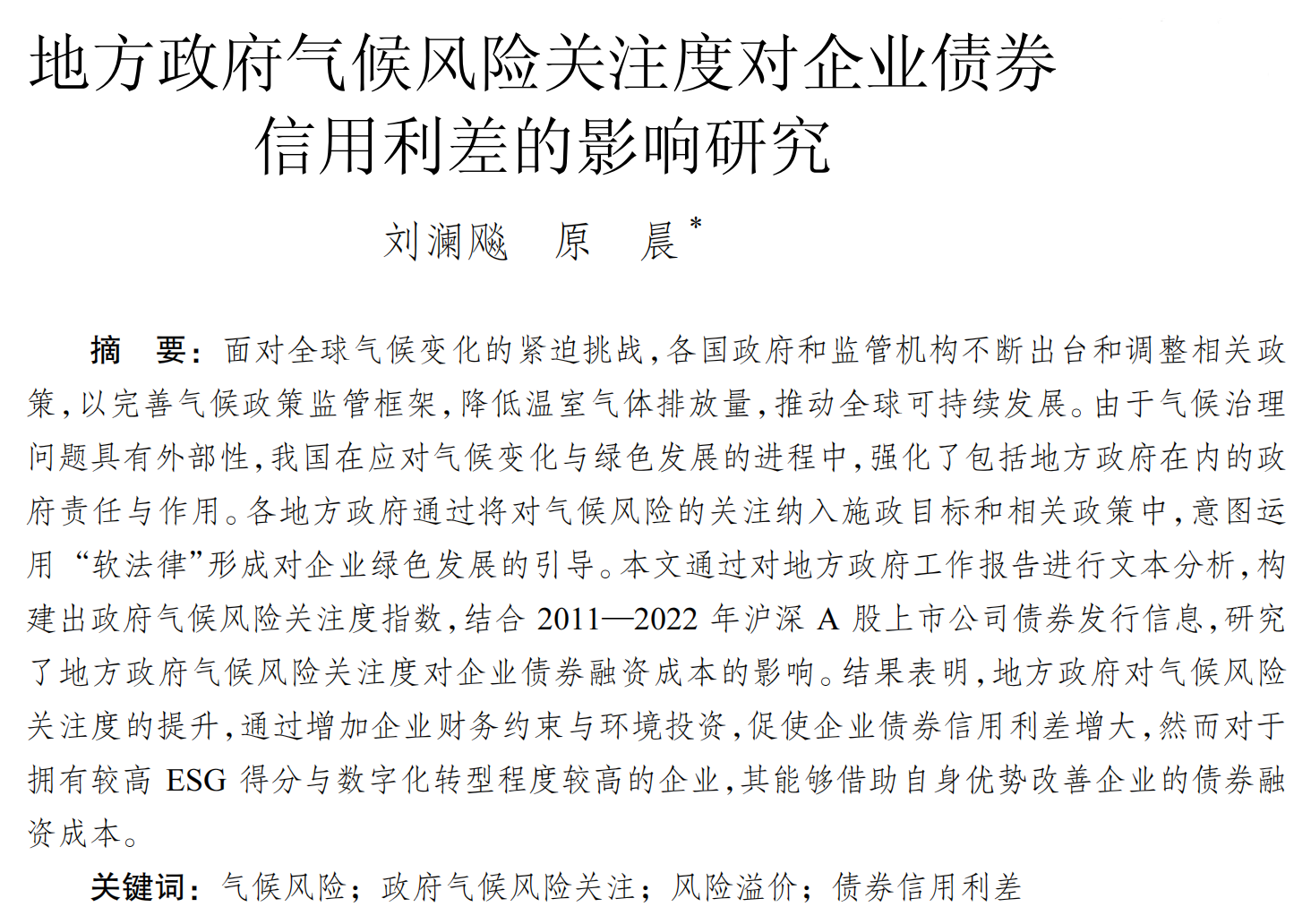 参考引用:[1]刘澜飚,原晨.地方政府气候风险关注度对企业债券信用利差的影响研究J南开经济研究,2025,(02):61-80.