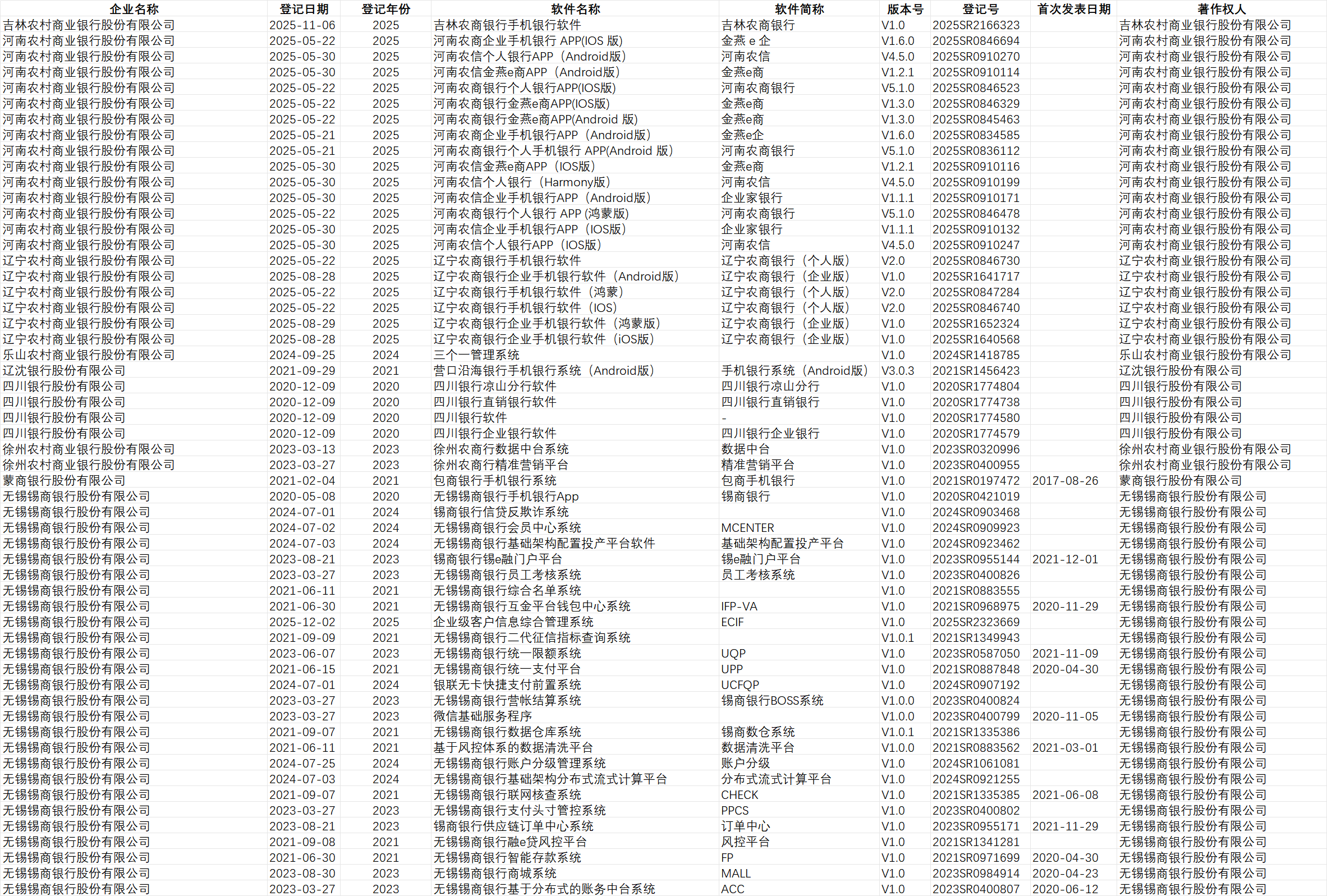 数据指标:企业名称、登记日期、登记年份、软件名称、软件简称、版本号、登记号、首次发表日期、著作权人。