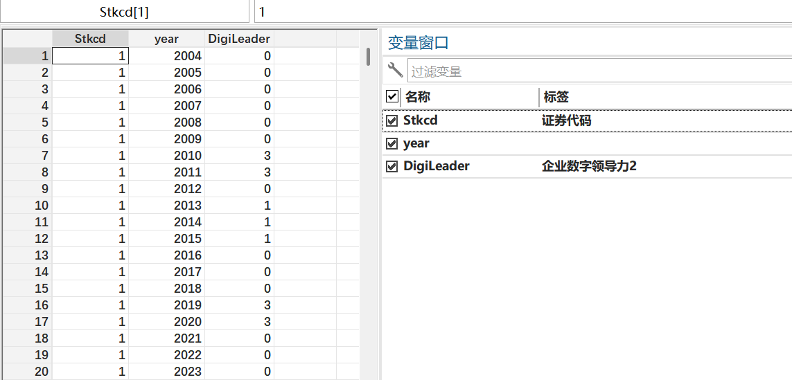 本文参考 Wang 等人(2023b)的研究方法,对 dleader 变量进行赋值:若企业高级管理团队(TMT)中任一成员具备数字技术相关专业教育或工作经验,该变量赋值为 1;若拥有数字技术经验的 TMT 成员同时任职于董事会,赋值为 2;若数字领导者同时担任董事会成员、首席执行官或董事长,赋值为 3;若企业未设置任何数字领导者,则赋值为 0。该变量依托结构权力研究思路,可衡量高级管理团队不同职位所隐含的权力层级差异(Wang 等,2023b),高管团队的结构权力越大,对公司决策流程的掌控力度也就越强。