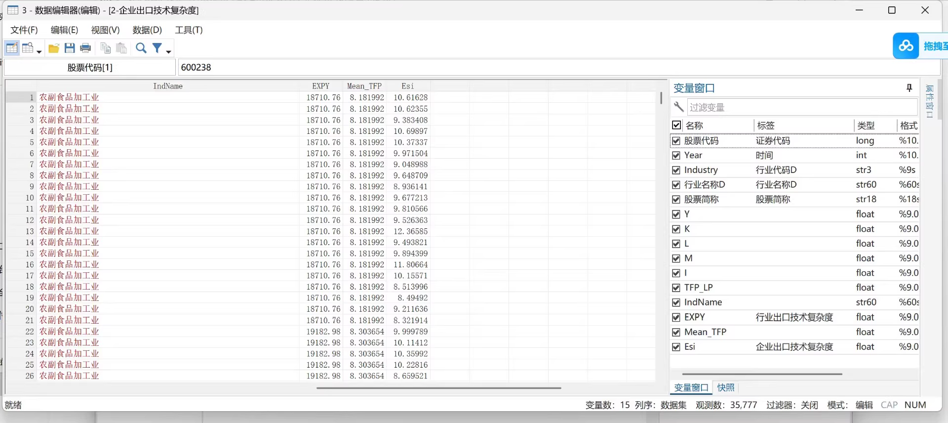 参考高翔和袁凯华(2020)的研究,使用企业全要素生产率指标TFP(采用LP法测算)调整行业出口技术复杂度,得到企业出口技术复杂度,研究则主要参考许欢和赵伟康(2025)的模型进行指标构建与模型运行。