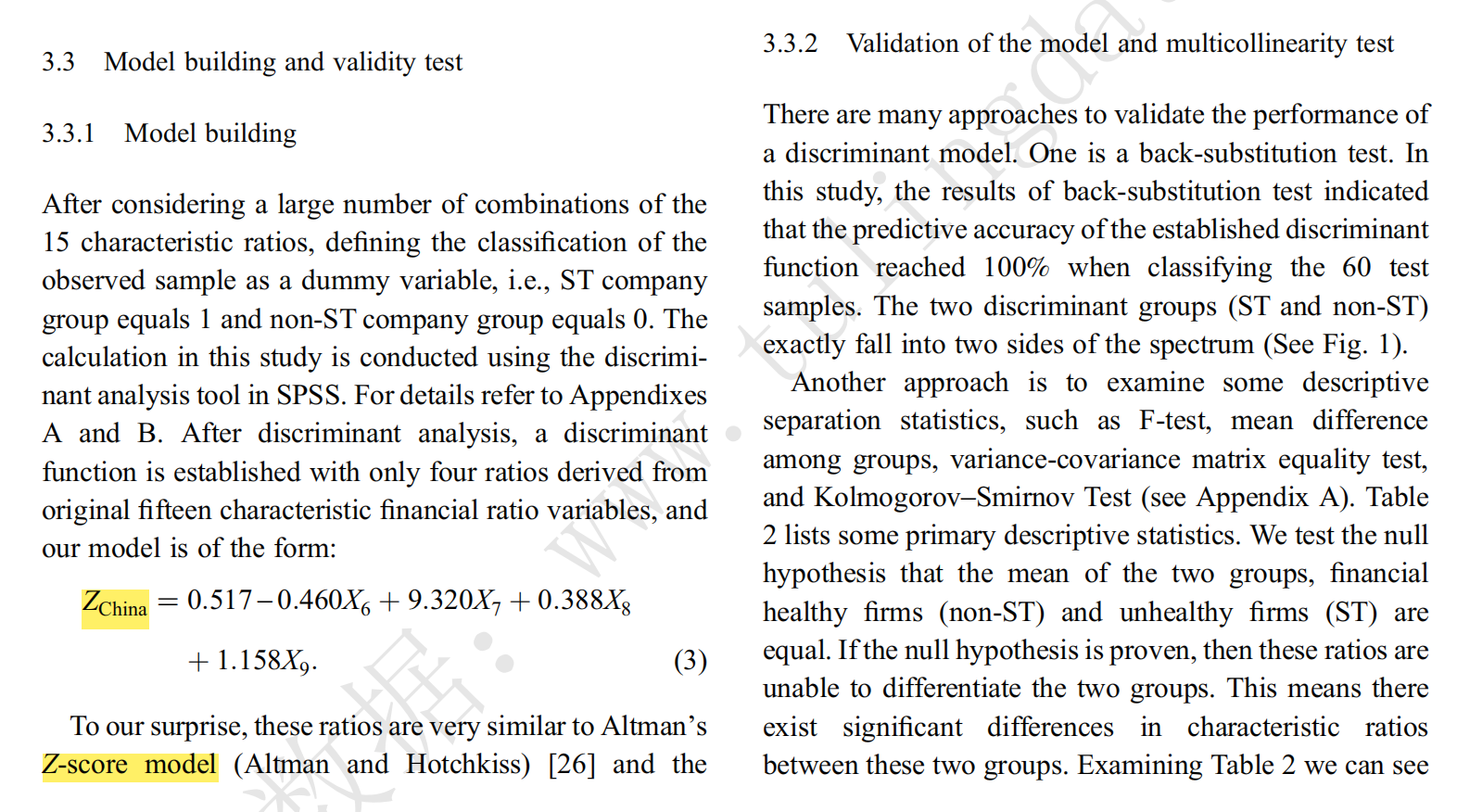 Z-score 模型是一种用于定量评估上市公司债务违约风险的工具,是美国学者爱德华·奥特曼(Edward Altman)在 1968 年提出的,旨在克服传统单一财务指标(如流动比率、资产负债率)在风险判断上的不足。