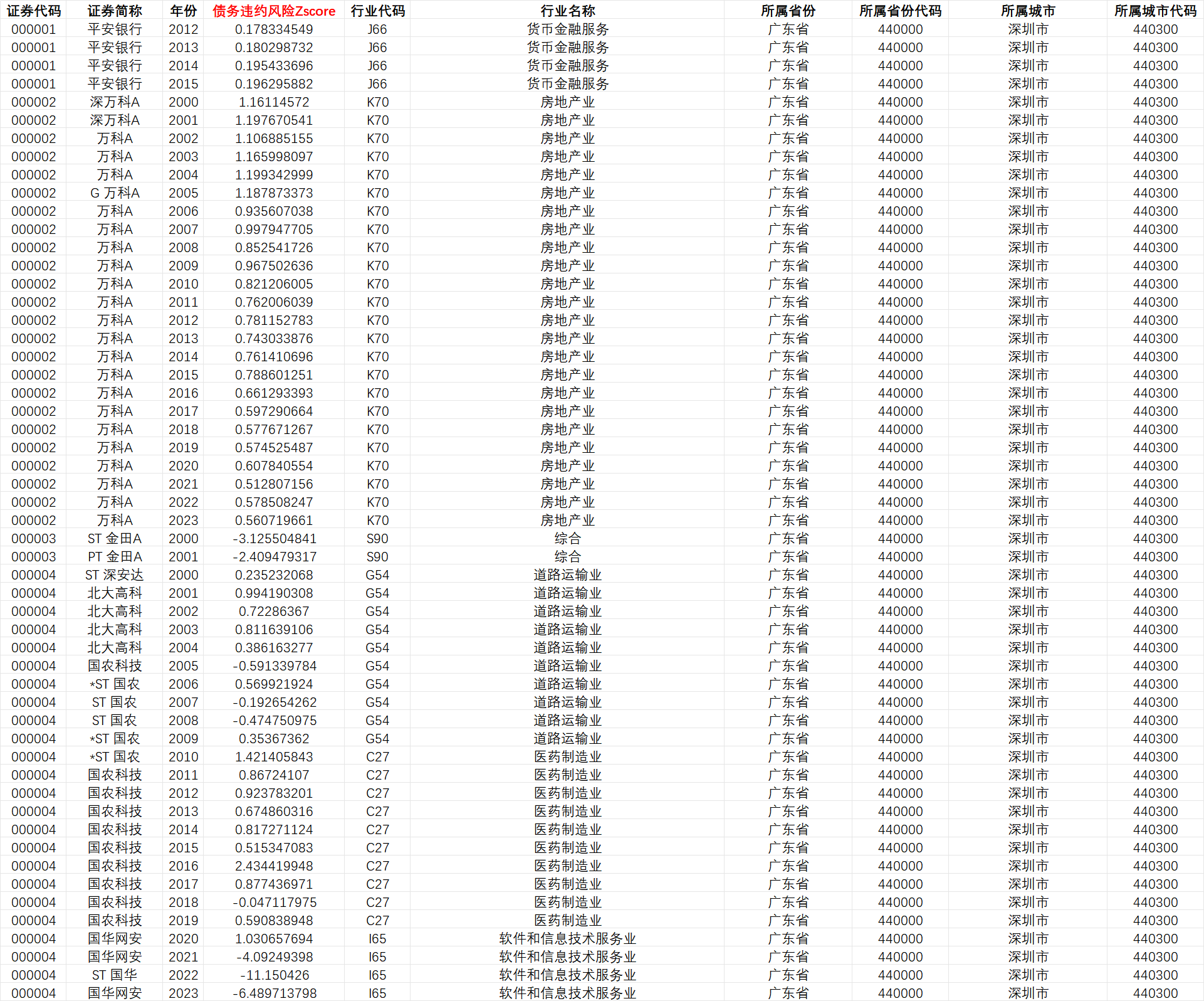 Z-score 指标反映了上市公司的债务违约风险水平。